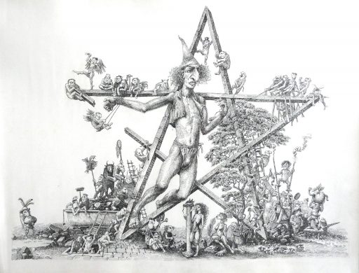 Federzeichnungen, Max Peter Haering, Der große Zauberer, 1985, Tuschfederzeichnung, Preis auf Anfrage, SüdWestGalerie