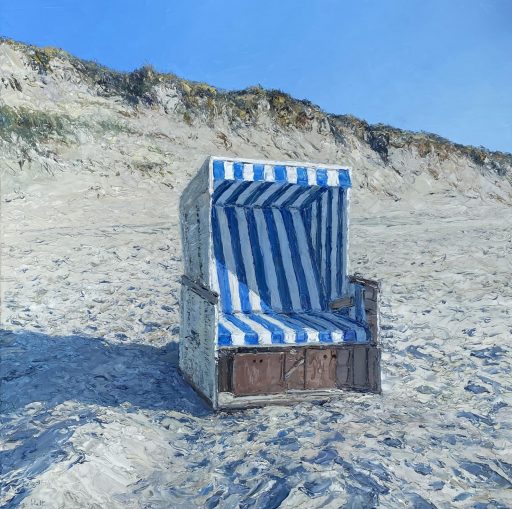 Ferne Heimat, Peter Witt, Strandkorb auf Sylt, 2024, Öl auf Leinwand, 100 cm x 100 cm, Preis auf Anfrage, Galerie Cyprian Brenner