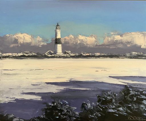 Ferne Heimat, Stefan Dobritz, Winter am Kampener Leuchtturm/Sylt, 2023, Öl auf Leinwand, 40 cm x 50 cm, Preis auf Anfrage, Galerie Cyprian Brenner